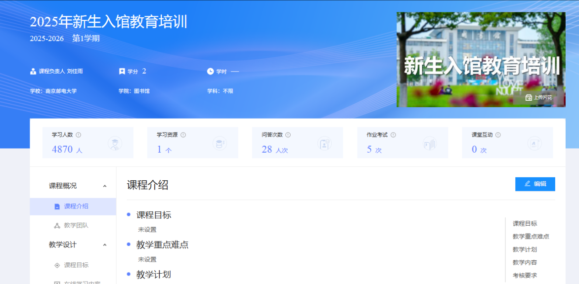 暑期在智慧树网站开展线上新生入馆教育微课程