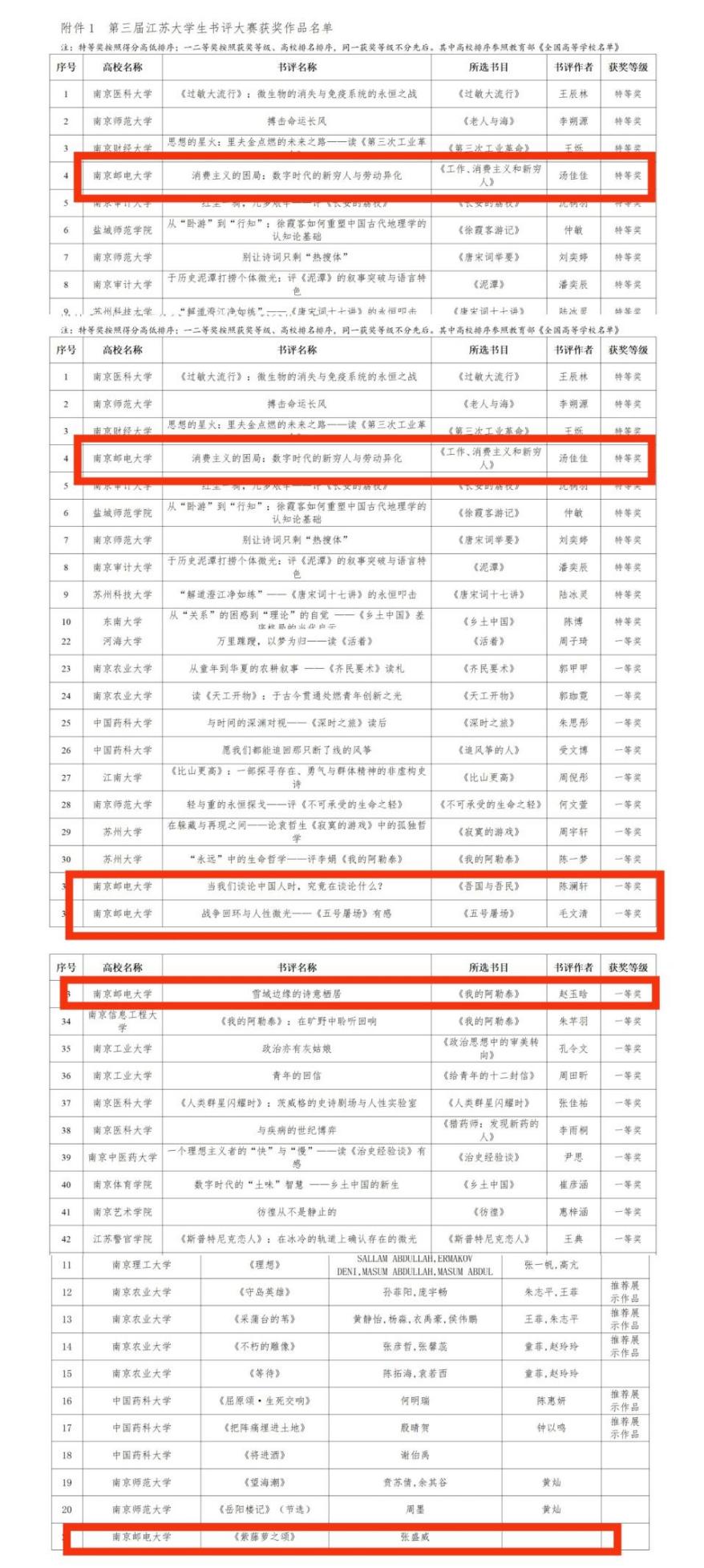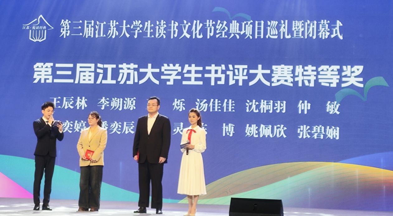 在第三届江苏大学生书评大赛中,我校学子凭借对经典著作的深刻洞察和精湛文字表达,从全省59所高校的319个作品中脱颖而出,喜获特等奖1项、一等奖3项、二等奖2项,获奖学生均被授予“读书标兵”称号。汤佳佳的作品《消费主义的困局:数字时代的新穷人与劳动异化》,以独到视角和深刻分析斩获特等奖,她还作为获奖学生代表在闭幕式上发言。陈澜轩的《当我们谈论中国人时,究竟在谈论什么——读〈吾国与吾民〉》、毛文清的《战争回环与人性微光——〈五号屠场〉有感》、赵玉晗的《雪域边缘的诗意栖居——读〈我的阿勒泰〉》荣获一等奖。张盛威的《指引前行的太阳——读〈死去的太阳〉》、顾佳凝的《原应恣意,终却叹息——“红楼四春”之二:迎春VS探春》荣获二等奖。