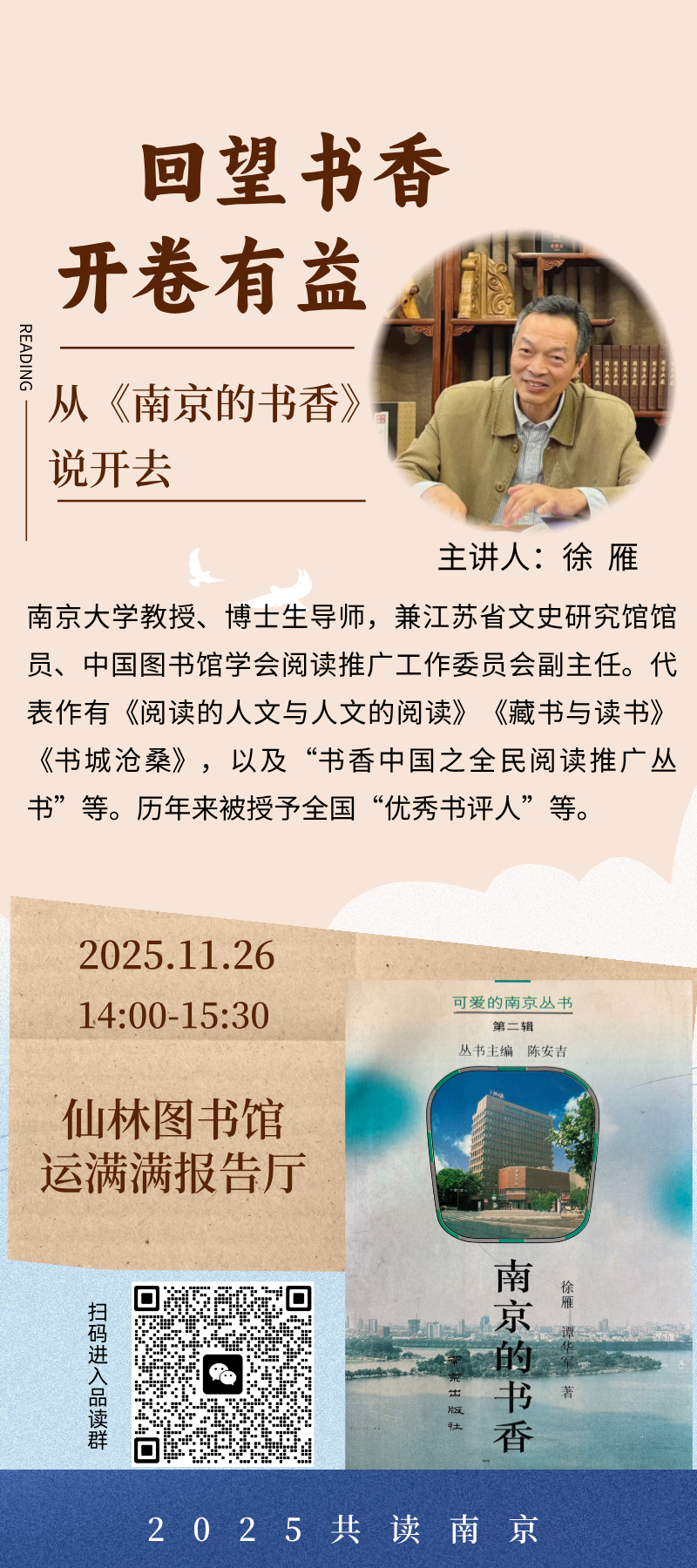 关于举办《回望书香 开卷有益——从<南京的书香>说开去》讲座的通知
