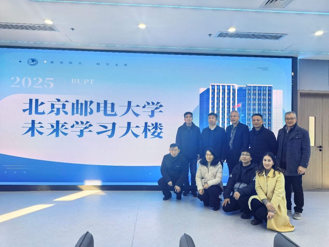 下午,调研团访问北京邮电大学。在北京邮电大学图书馆馆长邱雪松的陪同下,首先参观了今年9月投入使用的未来学习大楼,详细了解了智慧教学系统、AI课堂评价系统等信息化教学设施,并亲身体验了智慧教室的先进功能。