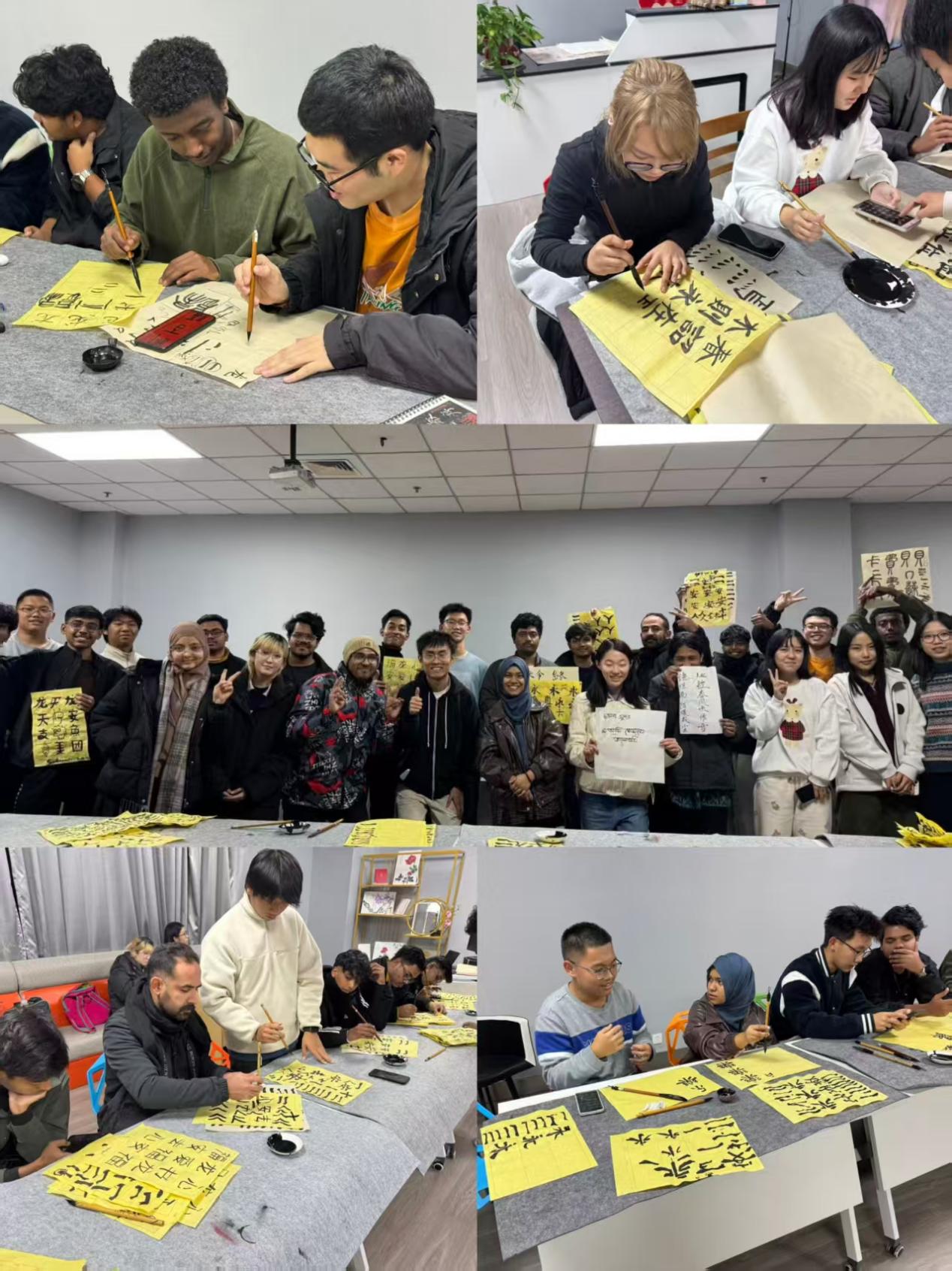 本次活动主题是中国传统书法和瓦当拓印。活动伊始,金川书画社杨晨曦同学为大家讲解了书法和拓印的发展历程、历史意义以及操作步骤。在中国学生的专业示范与耐心指导下,留学生们满怀好奇与热忱踊跃参与实践,执刷、匀墨、覆纸、捶拓、握笔、运腕、落墨。通过一墨一印的制作和一笔一划的书写,留学生们在亲身实践中深切感受中国传统文化的雅致韵味与汉字的独特韵律。