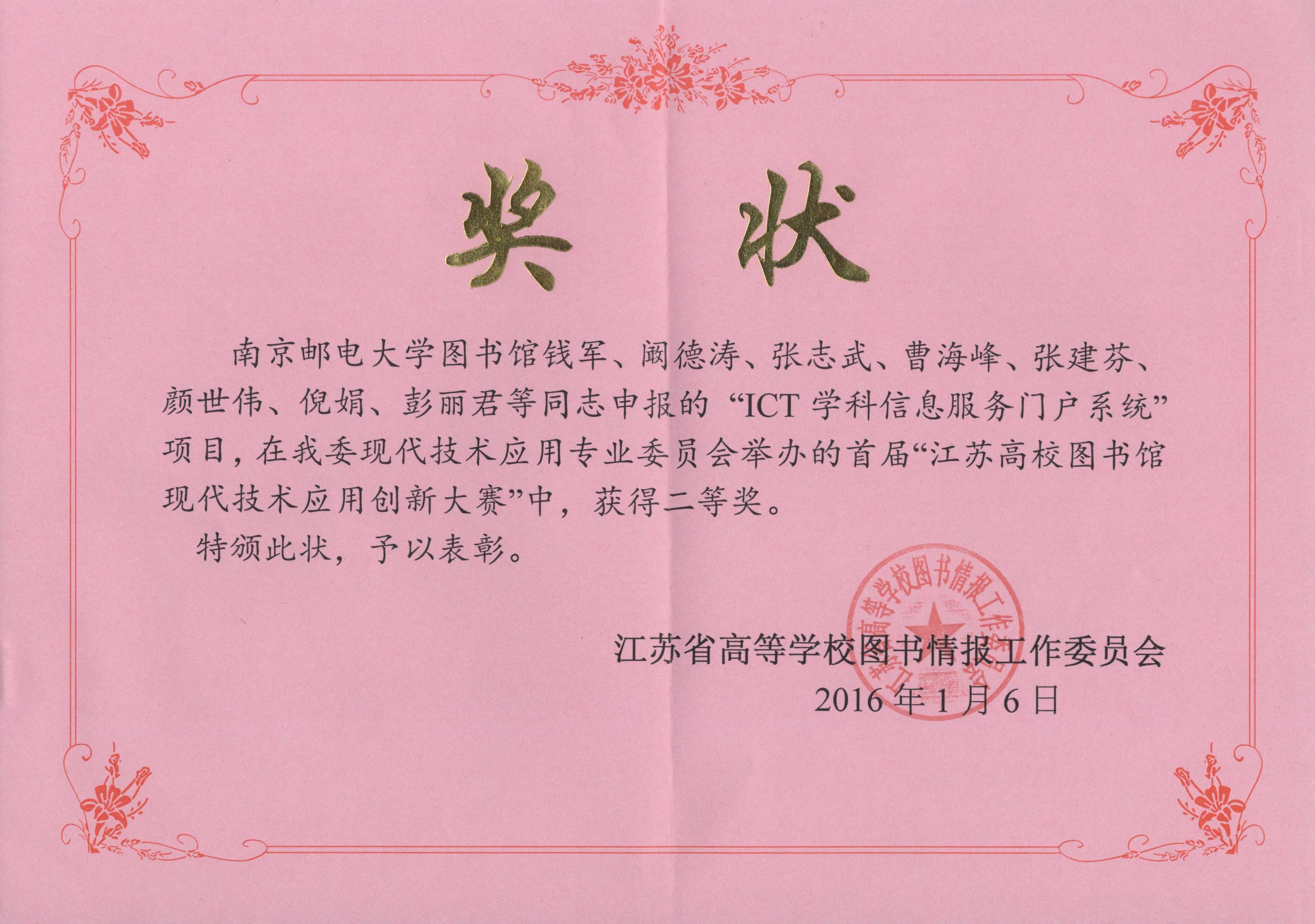 钱军馆长主持了1月6日上午的参赛项目交流。现代技术专委会年会有来自于省内高校图书馆的100余名代表参加,并提交参赛案例36份。我校图书馆提交的案例《ICT学科信息服务门户系统》荣获二等奖。(张志武)