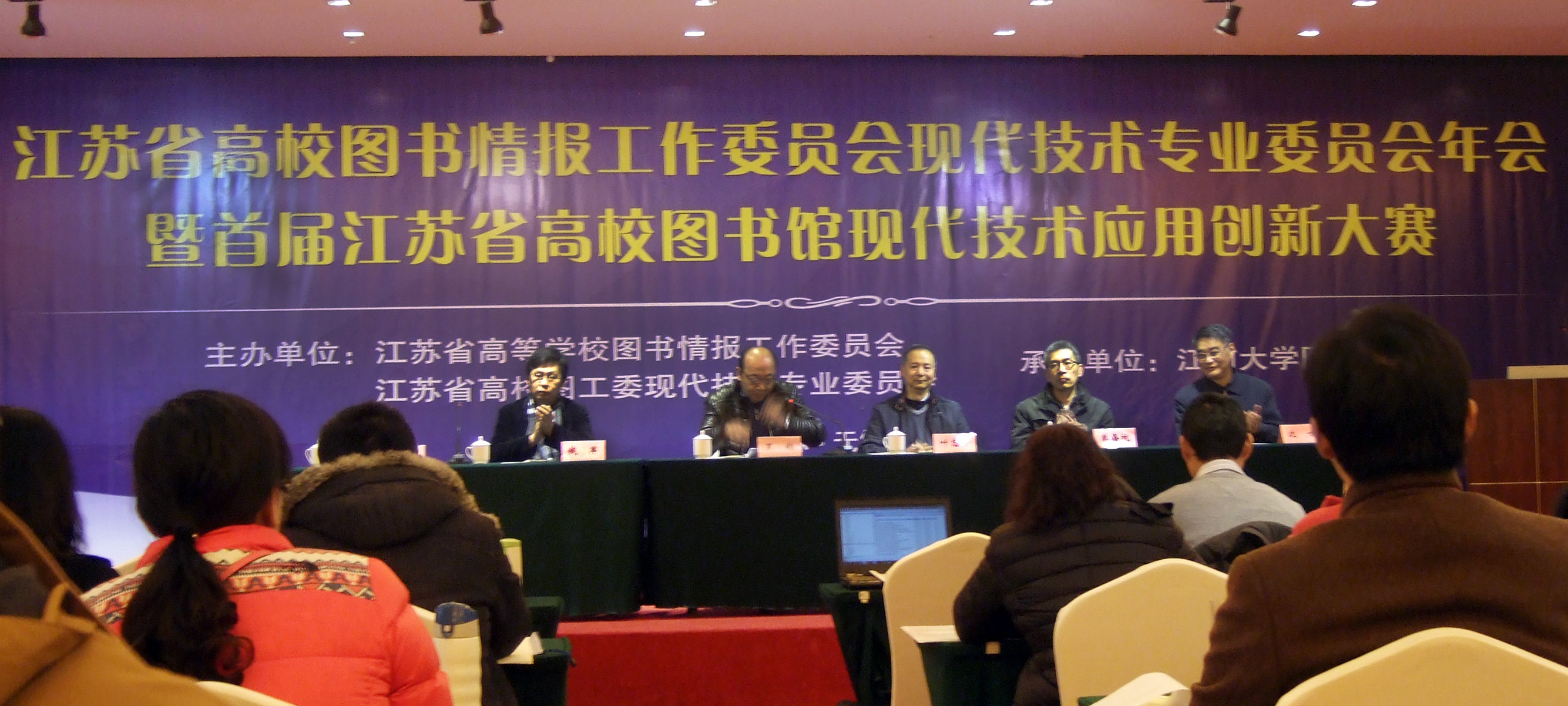 为了加强图书馆的现代化建设,提高现代技术应用与数字化服务的水平,推进江苏省图书馆界的内部技术交流,江苏省高校图书情报工作委员会于2016年1月4日至6日在江南大学召开了“江苏省高校图书情报工作委员会现代技术专委会年会暨首届江苏高校图书馆现代技术应用创新大赛”。现代技术专业委员会副主任、我校图书馆馆长钱军一行参加了会议。