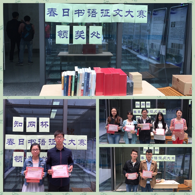 2016年3月,南京邮电大学图书馆启动“春日书语”主题征文大赛,截止到4月6日,共收到128篇征文作品。经由南京邮电大学图书馆、校团委、校宣传部、校听风文学社、校《南邮青年》杂志社、南京师范大学那天文学社、南京工业职业技术学院撷英文学社的相关老师和学生组成的评审团进行初审和终审,自动化学院杨昕(参赛作品《白玉兰》)以及经济学院何明杰(参赛作品《书寻》)的作品被评为一等奖,外国语学院吴真等4位同学的作品被评为二等奖,计算机、软件学院张佩迎等6位同学的作品荣获三等奖,贝尔英才学院张芷媛等15位同学的作品荣获优秀奖。4月27日,图书馆在仙林图书馆南厅对在此次比赛中获奖的同学颁发证书和奖品。
