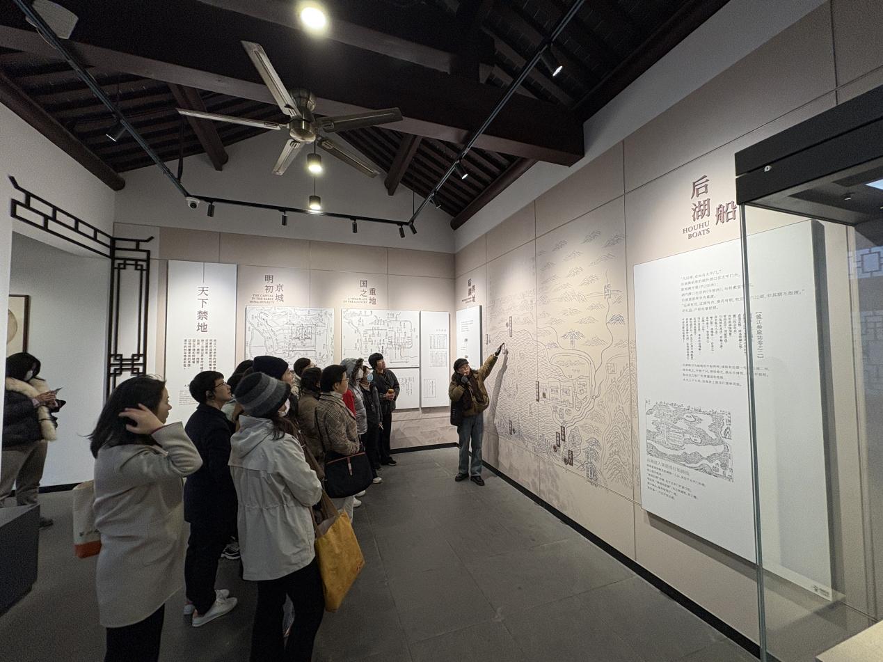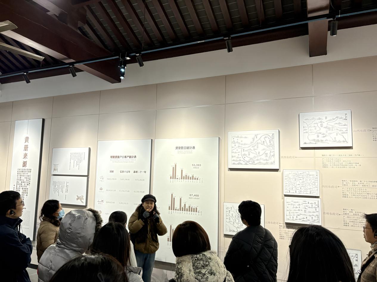 本次寻访的重头戏,是位于梁洲的黄册库遗址展览馆。余宏玲老师结合书中对明代国家治理体系的记述,详细解析了黄册库作为“古代国家档案中枢” 的历史地位:“这里曾收藏着全国的户籍赋税档案,玄武湖的隔绝环境使其成为天然的档案库房,见证了明代‘编户齐民’的制度智慧。”展览馆内的文献资料与实地讲解相结合,让老师们对书中 “玄武湖在帝国治理中的独特作用” 有了更深刻的理解。