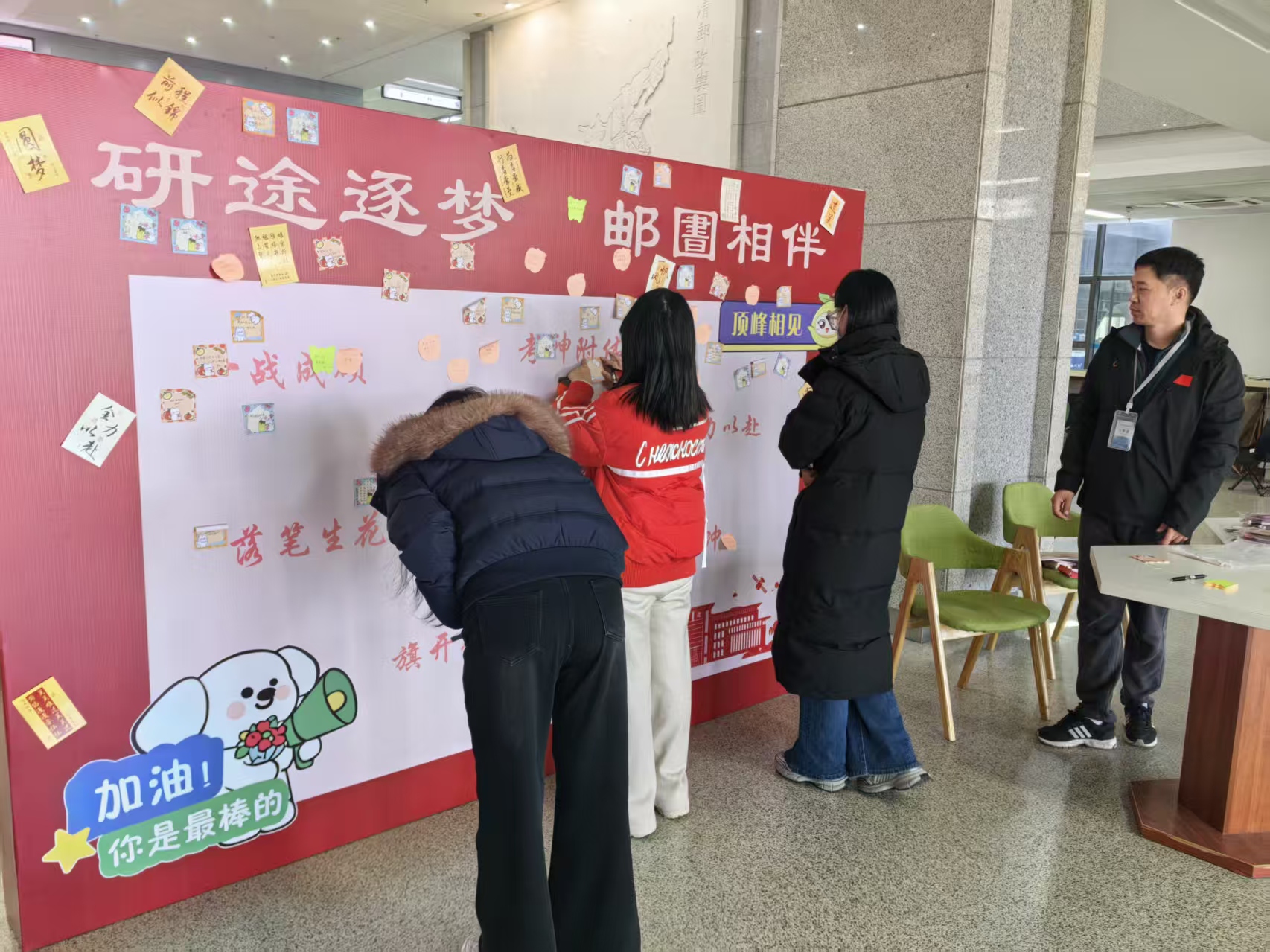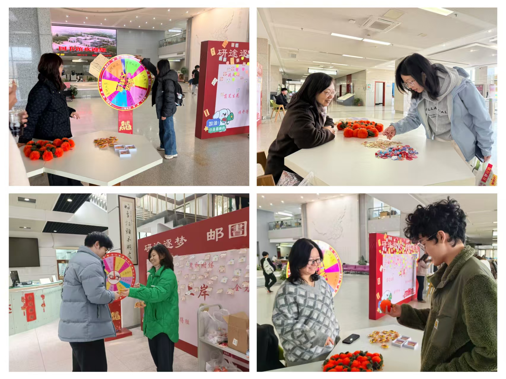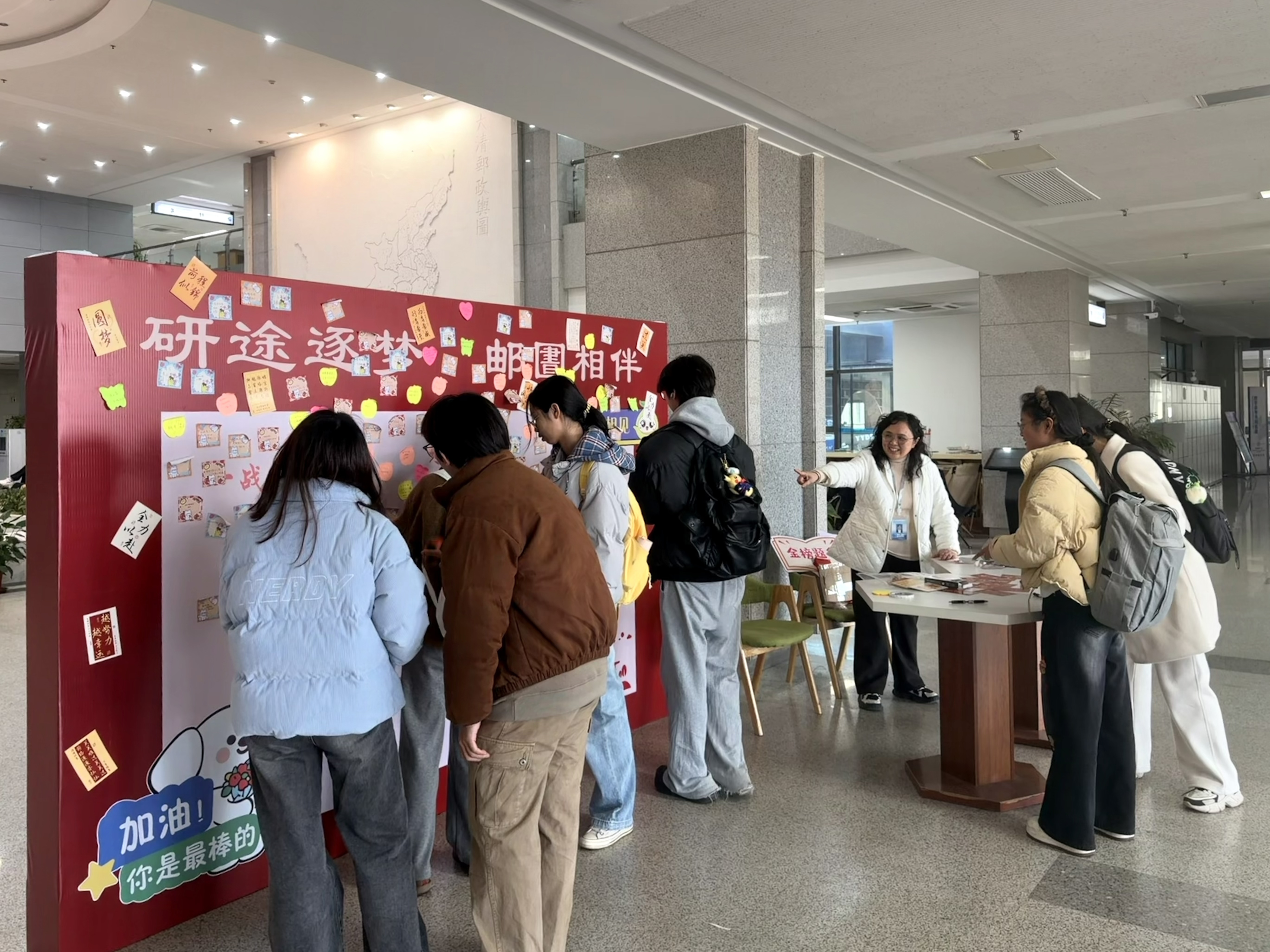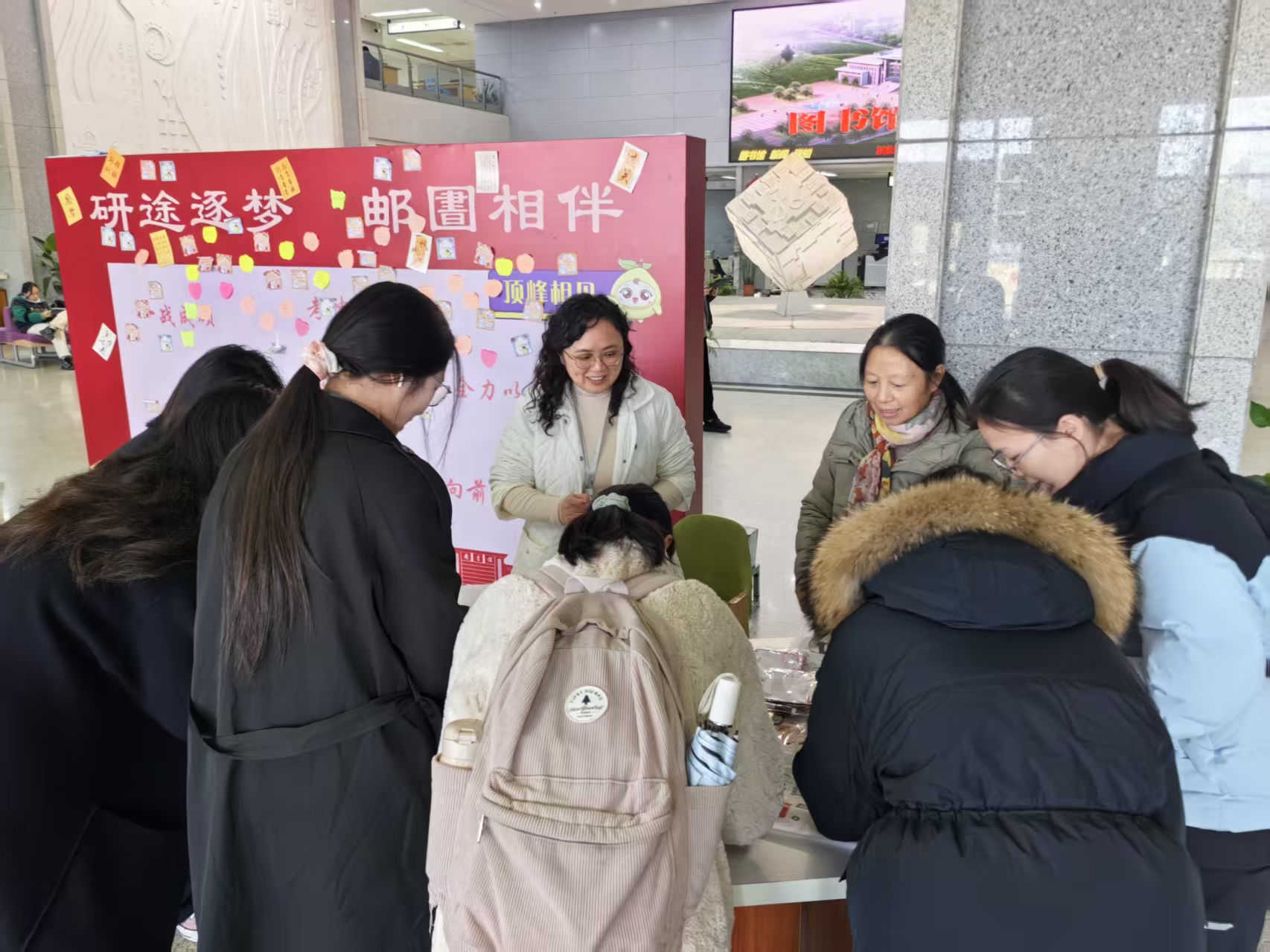 为切实缓解考研学子冲刺阶段备考压力,提振迎考信心,营造温暖浓厚的备考氛围,12月10日,南京邮电大学图书馆在仙林、三牌楼两校区同步开展“研途逐梦 邮圕相伴”2025年考研助力活动,近400名师生参加了本次活动。